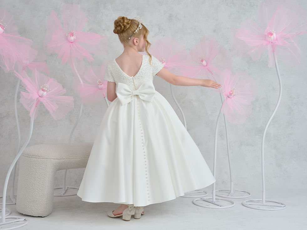 Explore our couture Communion dresses, handmade in Ireland with premium fabrics and exceptional attention to detail. Choose from beautifully crafted dresses ready to buy online or have one custom made to your girl’s exact measurements. We offer a perfect fit, warm personal service, and timeless designs created to make her Communion day truly unforgettable.