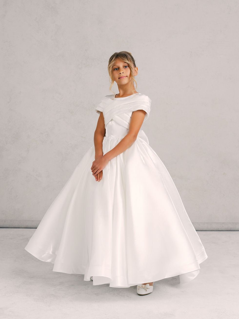 Explore our couture Communion dresses, handmade in Ireland with premium fabrics and exceptional attention to detail. Choose from beautifully crafted dresses ready to buy online or have one custom made to your girl’s exact measurements. We offer a perfect fit, warm personal service, and timeless designs created to make her Communion day truly unforgettable.